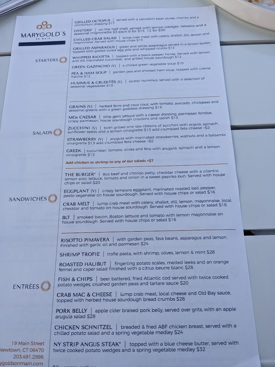 Welcome to Marygold's on Main, a culinary gem nestled in the heart of Newtown, Connecticut. Located at 19 Main St, this historic venue combines the elegance of an 1890's mansion with modern dining flair, creating a unique atmosphere that is as inviting as it is refined. As you step through its doors, you’re greeted by an ambiance that eloquently merges classical charm with art deco sophistication.